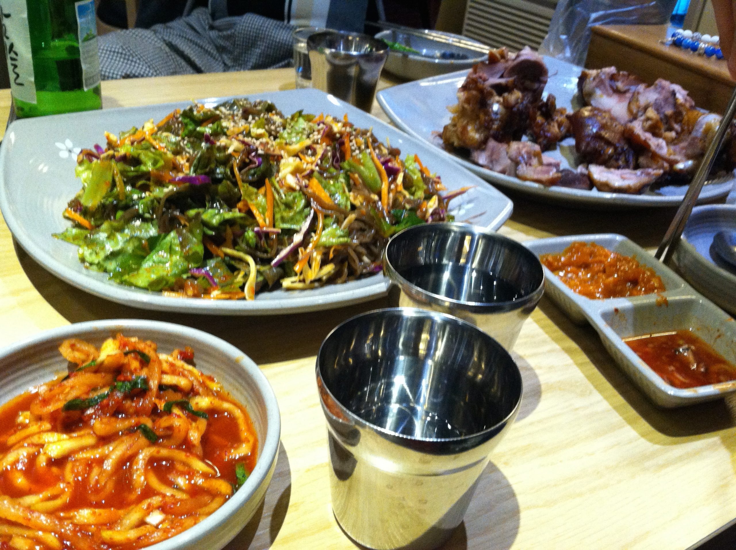 i looked back at him across the smoky barbecue pit and said some of the only things i know in Korean. “제 잘못이에요. 미안합니다. 한국말 못해요.” (je jalmos-ieyo. mianhabnida. hangugmal moshaeyo. It’s my fault. I’m sorry. I can’t speak Korean.)